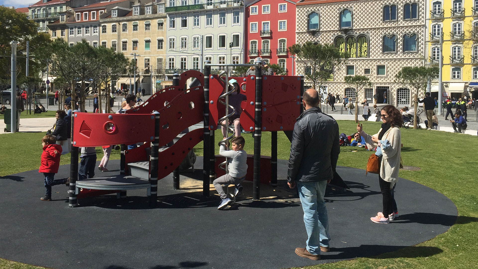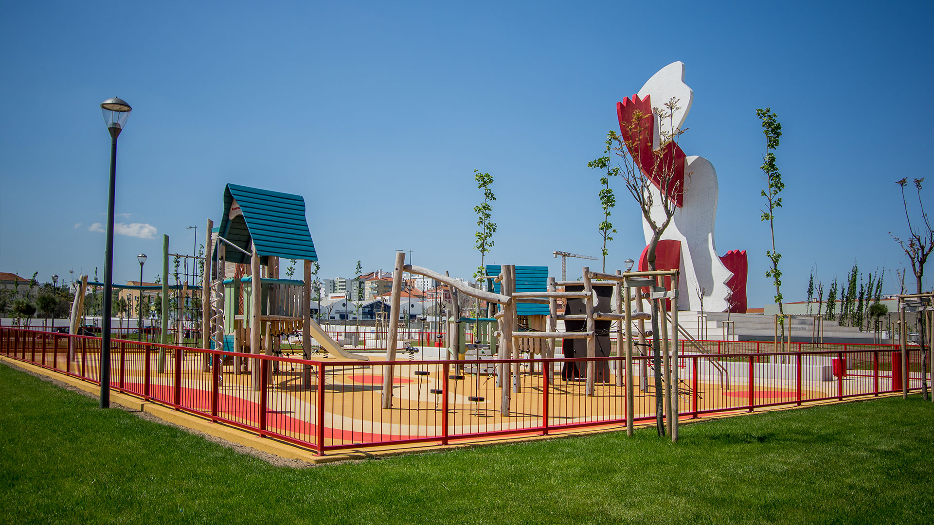 Situado num dos espaços emblemáticos da cidade de Lisboa, este Parque Infantil com vista para o Tejo, envolvido por um amplo jardim, veio substituir um parque de estacionamento selvagem, numa obra de renovação profunda do Campo das Cebolas.
